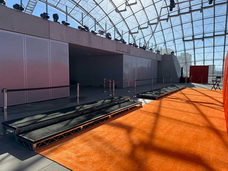 Our risers feature a modular design, which allows for a variety of shapes, sizes, and configurations. In addition, our risers are constructed with the highest standards in mind, featuring steel frames with real wood tops. One 4’ x 8’ module is strong and sturdy enough to support an evenly distributed load of more than 4,000 pounds. A stage helps commend attention to a presentation or attraction. Press risers are critical to any red carpet event, as they allow photographers and videographers to stand above the crowds, giving an unobstructed view of the action.